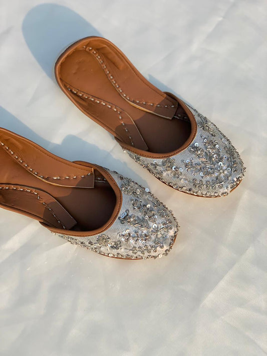 Silver Sparkle Hand-Embroidered Khussa