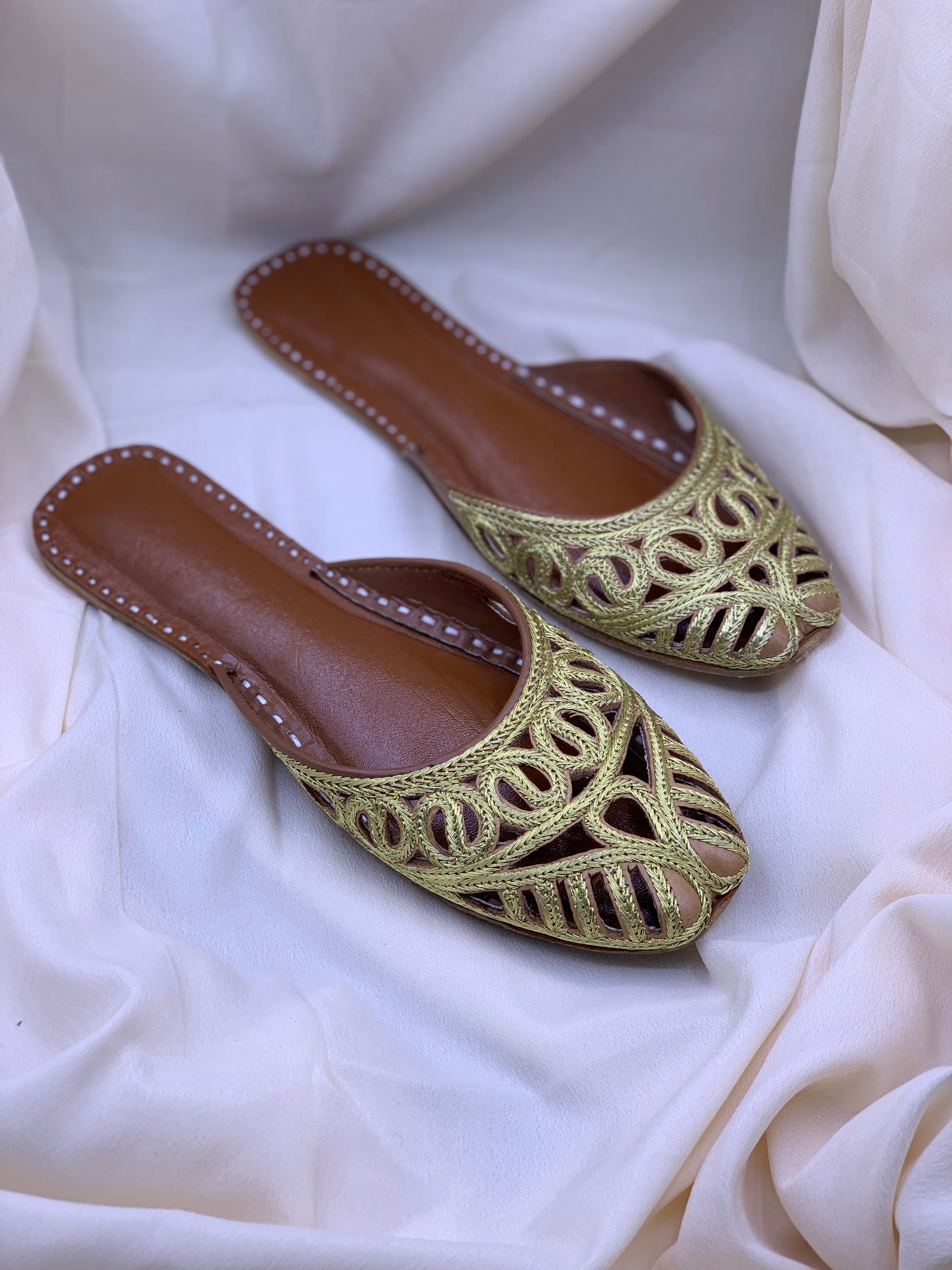 Step into timeless elegance with this handcrafted back open cutwork khussa, designed for comfort and everyday sophistication. Featuring intricate cutwork detailing with fine craftsmanship, this khussa offers a breathable design that keeps your feet comfortable while maintaining a classic traditional look.