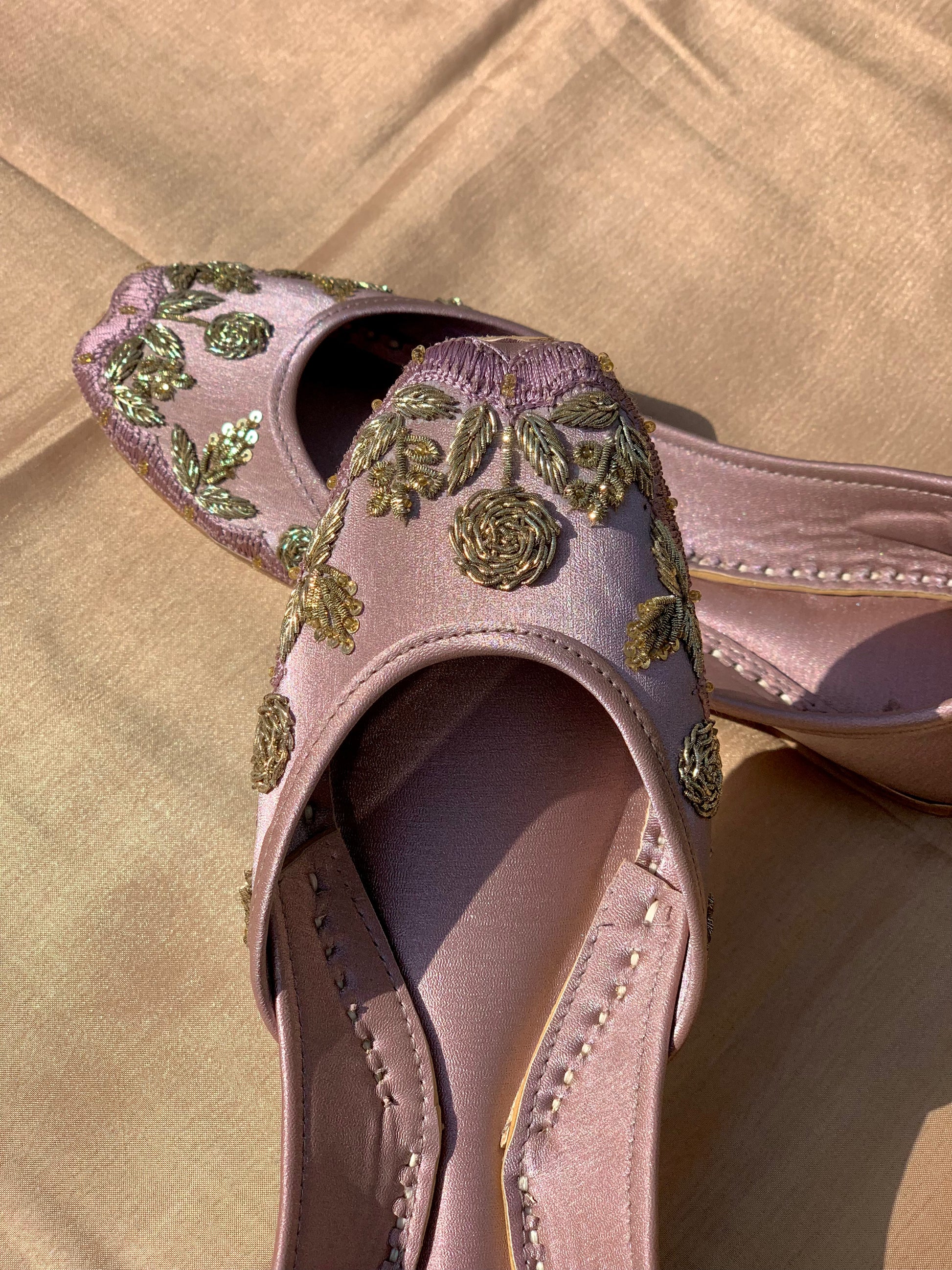 Handmade Bridal Khussa – Traditional Golden Embroidery
